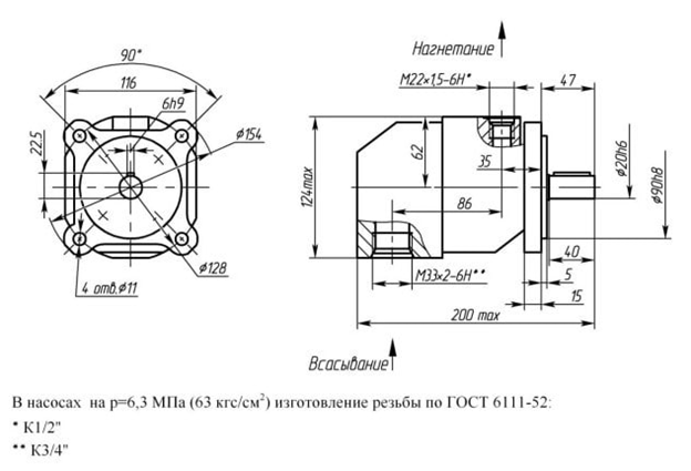 - объем (или удельная подача), который измеряется в кубических сантиметрах за оборот вала и показывает, сколько среды проходит за момент вращения;
