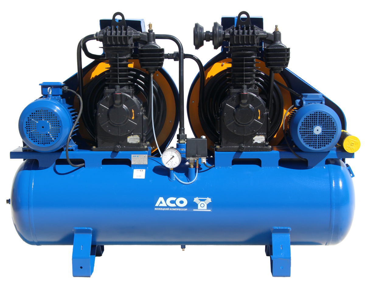 Передвижной поршневой компрессор К33 производства Бежецкого завода АСО. Данный компрессор оборудован ременным приводом от однофазного электродвигателя мощностью 7.5+11 кВт. В конструкции используется компрессорная головка К33.01 + К33.06. Объем ресивера составляет 250 л. Номинальная производительность данного компрессора 1350 л/мин, в то время как производительность по нагнетанию 1090 л/мин. Компрессор обладает максимальным рабочим давление равным 8 атм. Габаритные размеры агрегата составляют 190 х 70 х 135 см, при массе 580 кг.