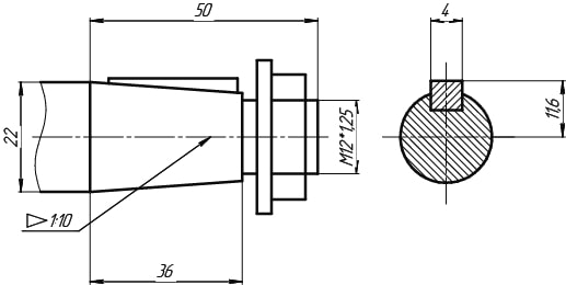 Вход — цилиндрический, выход — конический.
