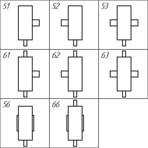 Вариант сборки 51 (52,53,56,61,62,63,66), вариант крепления 1, вариант расположения червячной пары 1