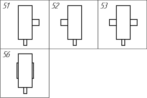 51 — вариант сборки (вертикальное исполнение, выход вниз);
